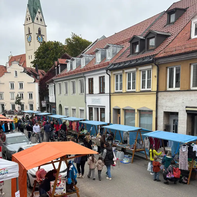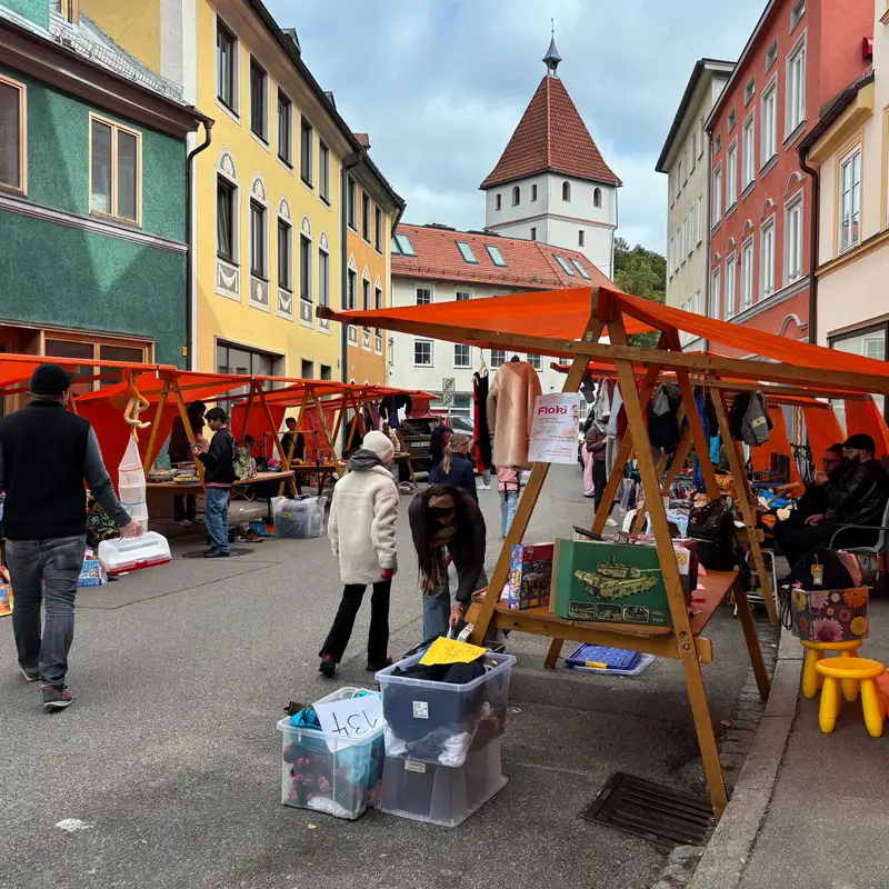 In einen Flohmarkt für Kinder und Jugendliche – den „Floki“ – verwandelte sich am 11. Oktober das Haus des Stadtjugendrings in der Bäckerstraße 9 in Kempten. Auch die für den Verkehr gesperrte Straße vor dem Haus wurde mit Hilfe wetterfester Marktstände zu einem bunten Flohmarkt.